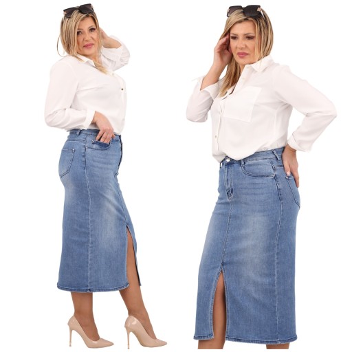 ЭЛЕГАНТНАЯ ДЖИНСОВАЯ ЮБКА С ПРОРЕЗЬЮ, БОЛЬШИЕ РАЗМЕРЫ ЗА КОЛЕНОМ, ЭЛЕГАНТНАЯ ЮБКА-КАРАНДАШ