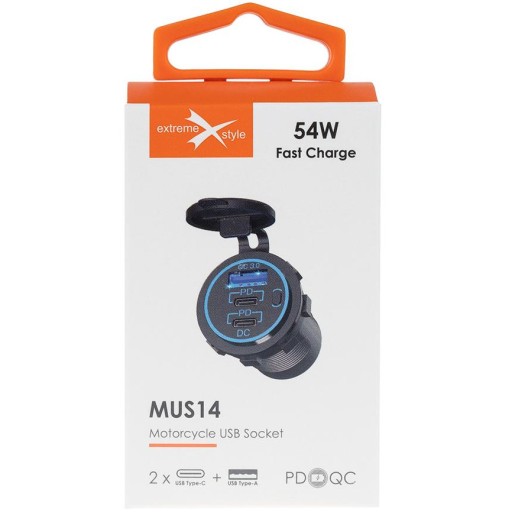 Gniazdo MUS14 jest stabilnym źródłem prądu dla nawet trzech urządzeń w tym samym czasie. Niezależnie od tego czy korzystasz w czasie jazdy na motocyklu z telefonu, nawigacji GPS, kamery czy innego urządzenia gniazdo marki eXtremestyle® to rozwiązanie problemu ich zasilania. Szybkie ładowanie zapewniają technologie Power Delivery i Quick Charge 3.0.