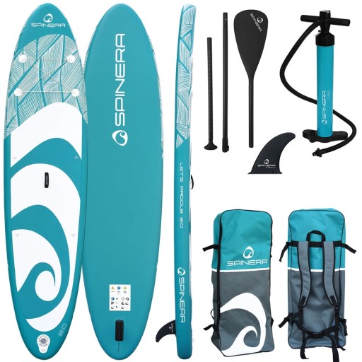 Model Let's Paddle austriackiej marki Spinera występuję w aż czterech rozmiarach. Na tej aukcji oferujemy rozmiar 11'2" (340 cm) czyli ten o najbardziej wszechstronnym charakterze. Będzie to idealny wybór na pierwszą deskę dla całej rodziny. Jej długość oraz szerokość sprawiają, że całkowita wyporność wynosi aż 340 l a udźwig 135 kg. Te parametry spokojnie wystarczą aby na desce mógł pływać rodzic z dzieckiem. Jeżeli jednak na desce będzie jedna osoba a przez to ciężar nie rozłoży się na dwa punkty, to rekomendujemy aby jego waga nie przekraczała 95 kg. Model należy do kategorii allround a więc cechuje go duża stabilność co pozwoli ją użytkować nawet osobnom, które z pływaniem na stojąco nie miały do tej pory styczności. Deska najlepiej sprawdzi się na wodach spokojnych oraz na małych falach.