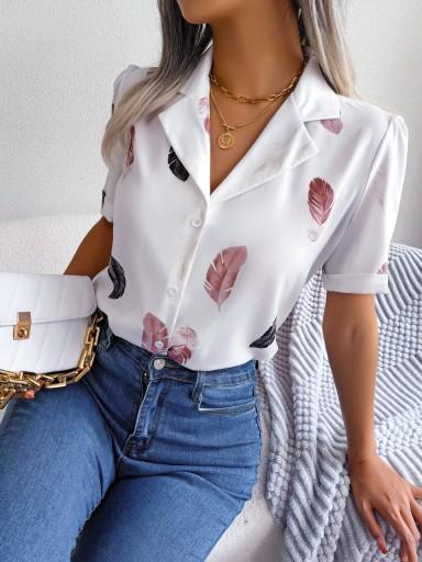 MODNA BLUZKA DAMSKA ELEGANCKA KOSZULA LETNIA GUZIKI WZORY KOLORY