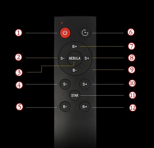 2️⃣Wciśnięcie przycisku NEBULA powoduje przełączenie się mgławicy na inny kolor, który dostępny jest aż w 8 rodzajach.