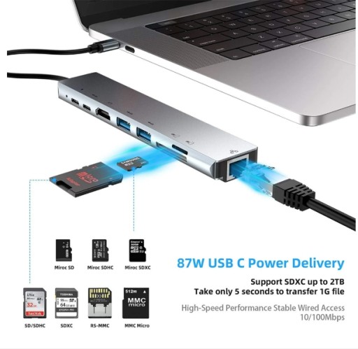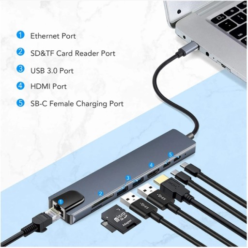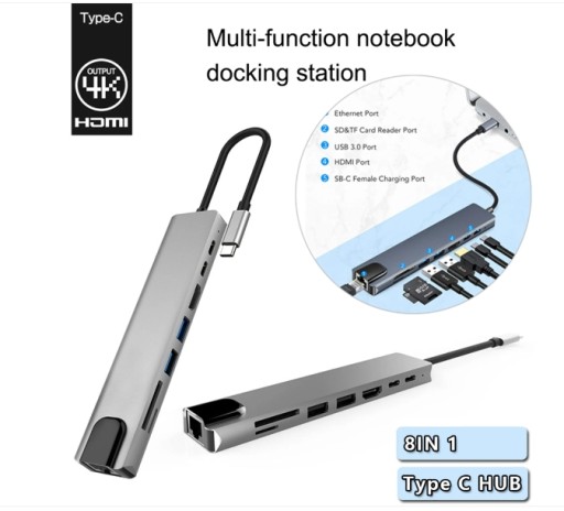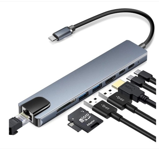 АДАПТЕР-концентратор-разветвитель USB-C TYPE-C НА 4x USB 8в1 ПЕРЕДАЧА
