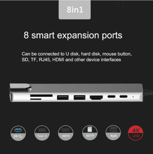- 8 inteligentnych portów rozszerzeń, które można podłączyć do dysku U, dysku twardego, aplikacji, SD, TF, DJ45, HDMI i innych interfejsów urządzeń.