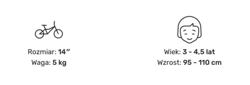 - Rama - rama wykonana z wysokiej jakości lekkiego stopu aluminium 6061, cieniowane rurki ramy geometria ramy dla początkujących oraz koła o rozmiarze 14” pozwalają najmłodszym na komfortową jazdę niska rama ułatwia wsiadanie i zsiadanie duży rozstaw kół, wygodna pozycja, mała wysokość siodełka zapewniają stabilność, dobrą równowagę i świetną zabawę bezpieczny, elastyczny ogranicznik skrętu zapobiega przekręceniu się kierownicy i stabilizuje jazdę na wprost.