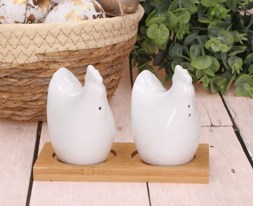 - Design: Dwuczęściowy zestaw w kształcie uroczych kur, które swoim wyglądem ożywią każdy wielkanocny stół.