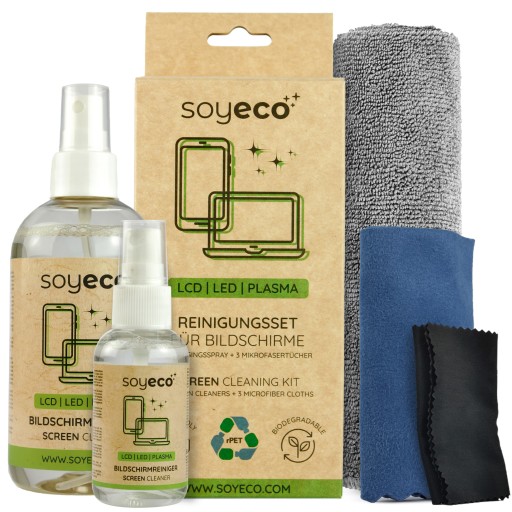 Płyn do czyszczenia nie zawiera ostrych substancji chemicznych, które mogłyby uszkodzić powłokę ekranu. Wysokiej jakości, bardzo chłonna i wytrzymała ściereczka z mikrofibry nadaje się szczególnie do czyszczenia delikatnych płaskich ekranów i chroni Twoje urządzenia.