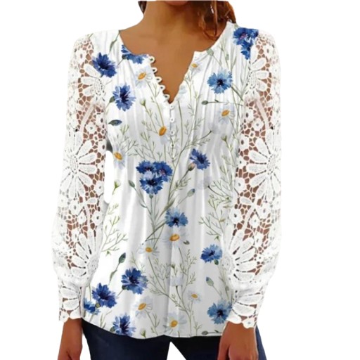 MODNA BLUZKA DAMSKA ELEGANCKA KOSZULA W KWIATY KLASYCZNA KORONKOWA LUŹNA