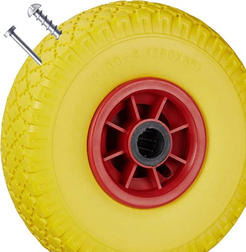 - zestaw 2 sztuk: 2 bezdętkowe koła zapasowe w kolorze żółto-czerwonym - również do wózków ręcznych, wózków transportowych i wielu innych. nadaje się do