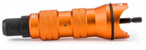 Dzięki temu urządzeniu w niesamowicie łatwy i szybki sposób wykonasz mocowania za pomocą nitonakrętek. Nitownica na wkrętarkę / wiertarkę w całości wykonana jest ze stali - wyjątkowo solidna konstrukcja. Całość umieszczona jest w plastikowej walizce. Adapter pasuje do każdej standardowej wkrętarki lub wiertarki.