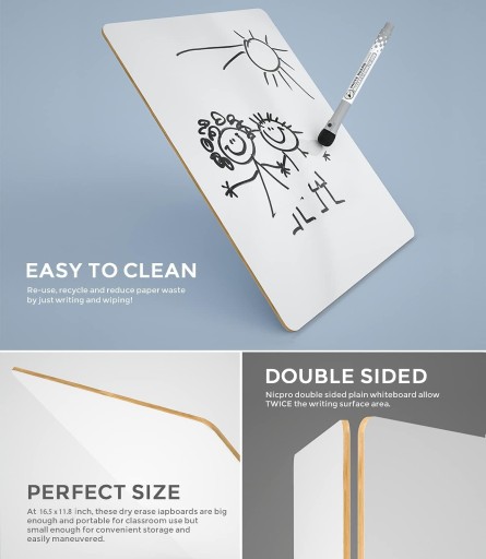 - DWUSTRONNA WIĘKSZA PRZESTRZEŃ DO PISANIA: Dwustronna, gładka tablica Nicpro zapewnia DWUKROTNIE większą powierzchnię do pisania.