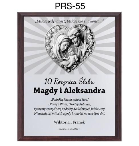 (rocznicę, imiona, podpis "od kogo" oraz datę zmienimy dla Ciebie) oraz odmienimy treść