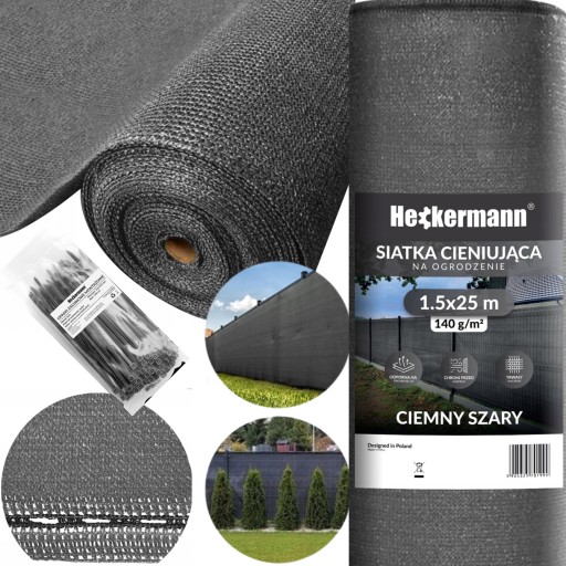 ▶️Siatka cieniująca, maskująca z HDPE w rolce 1,5m x 25m + 100 sztuk opasek zaciskowych.