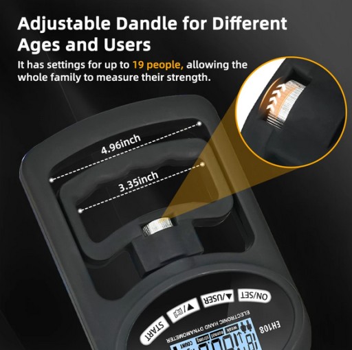 Dodatkowo: regulacja rączki, pamięć wyników, pomiar w kg i lb, skala siły dla poszczególnej płci oraz wieku
