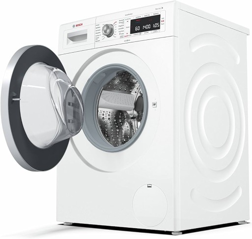 - Funkcje dodatkowe: programowania czasu startu, ecoPerfect, speedPerfect, ochrona przed zagniataniem, dodatkowe płukanie, pranie wstępne, Aqua-Stop