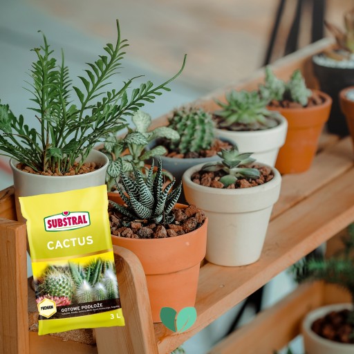 Substral do Kaktusów to gotowe, wysokiej jakości podłoże specjalistyczne „premium” do kaktusów i innych sukulentów, jak również bonsai. Ziemia jest mieszaniną torfu wysokiego i niskiego, keramzytu. Poprawia strukturę podłoża. Wszystkie dodatki dostosowane są do specyficznych wymagań kaktusów i sukulentów.
