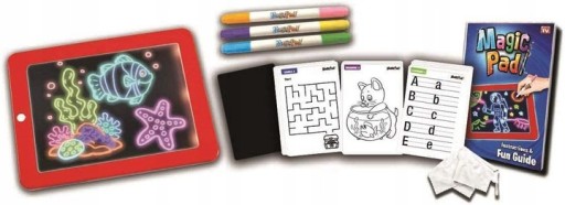 Magiczny tablet do rysowania z podświetleniem Magic Pad to szansa że Twoje dziecko rozwinie swoją wyobraźnię, nauczy się pisać, liczyć, a przy tym będzie świetnie się bawić. Dzięki światłu LED rysunki i prace Twojego dziecka zostaną podświetlone. W zestawie znajdziesz również 3 nietoksyczne dwustronne pisaki neonowe.