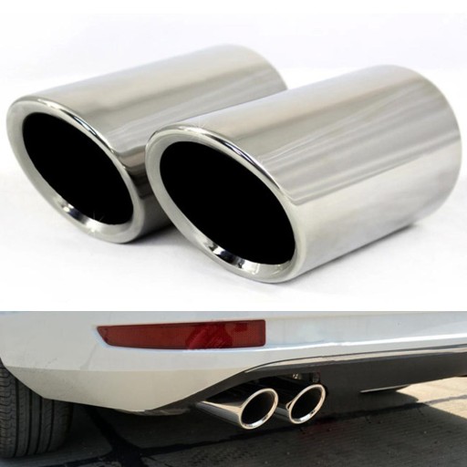 Końcówki tłumika wykonane z polerowanej stali nierdzewnej. Odporne na warunki atmosferyczne i wysokie temperatury. Nadają ciekawy, sportowy wygląd. Łatwy i szybki montaż na wcisk, bez spawania (wewnątrz posiadają zaczepy montażowe). Możliwość również spawania.