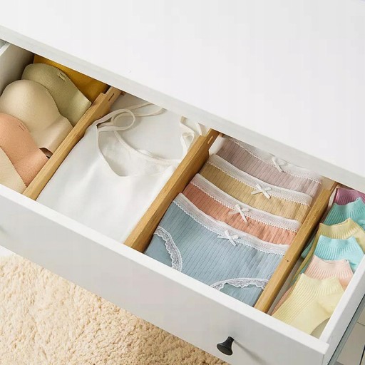 PRZEKŁADKI DO SZUFLAD ORGANIZERY BAMBUSOWE REGULOWANE PRZEGRÓDKI 4SZT