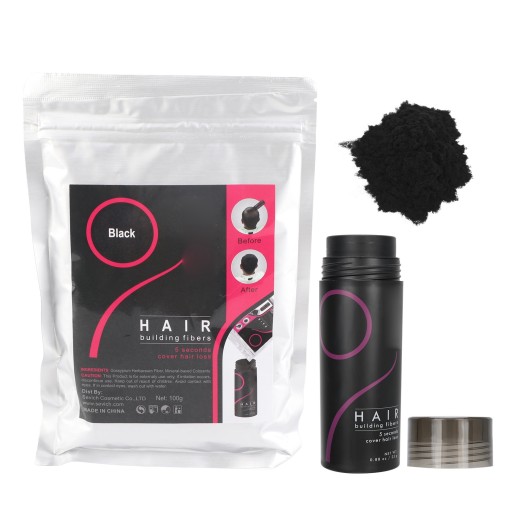 1. Włókno wzrostu włosów jest rodzajem cienkiej mikrofibry. Wykonany z naturalnych materiałów, nie podrażnia skóry głowy i nie zatyka porów.