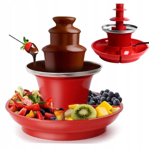 3. Wielofunkcyjny: poza tym, że pełni funkcję fontanny czekoladowej, może służyć do polewania sosów BBQ, meksykańskiego sera nacho, rancza i fontanny alkoholowej. Idealny do maczania truskawek, wiśni, plasterków jabłek, ciastek, warzyw itp.