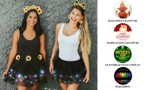 damska tutu jest wyposażona w kolorowe diody LED, wbudowana bateria guzikowa jest w pełni zainstalowana, może emitować kolorowe światła tylko za pomocą przełącznika. Z ozdobą cekinów w kształcie gwiazdek jest bardzo piękna. Dodaj więcej blasku i zabawy swojej imprezie lub festiwalowi.