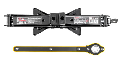 Do podnośnika dołączony klucz, który należy zahaczyć o metalową pętelkę podnośnika. Następnie wystarczy kręcić w prawo, by podnieść pojazd oraz w lewo, by go opuścić