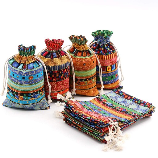 - Zestaw 20 szt. egipskich torebek sznurkowych z etnicznego płótna, wykonanych z lnu, juty itp.