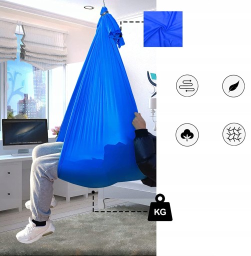 - Huśtawka sensoryczna dla dzieci i dorosłych wykonana jest w 100% z lekkiego i oddychającego materiału. Odporny na rozdarcie, dwustronny i zmywalny.