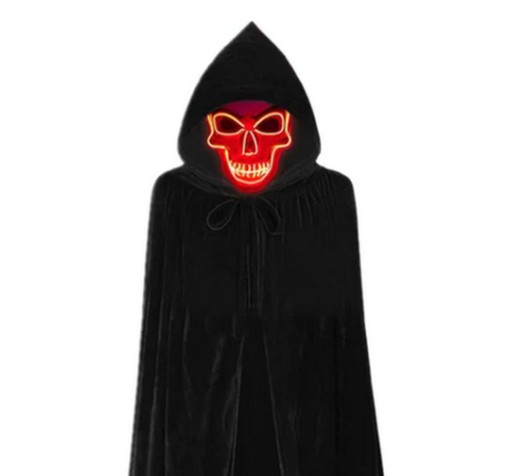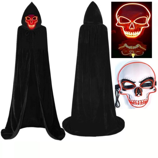 PRZEBRANIE KOSTIUM PELERYNA Z KAPTUREM + ŚWIECĄCA MASKA LED CZARNA