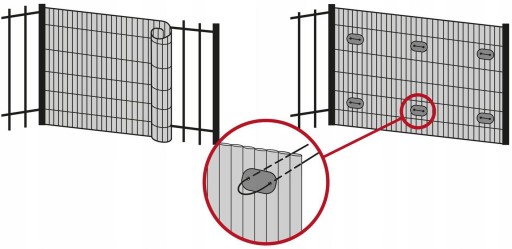 Lekka konstrukcja umożliwia łatwe przymocowanie do różnych powierzchni, takich jak płoty, balustrady czy siatki ogrodzeniowe.