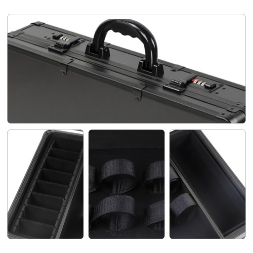 - Najwyższej jakości aluminiowe wykończenie i konstrukcja, wzmocnione stalowe narożniki dla dodatkowej trwałości, piękne gładkie czarne wykończenie.