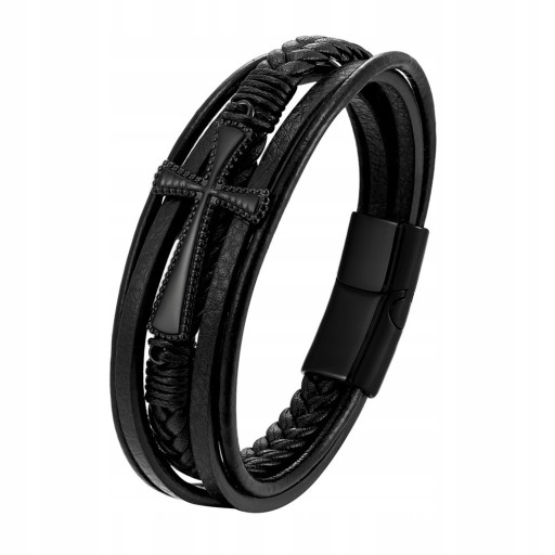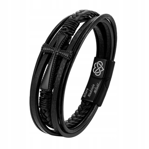 Мужской кожаный браслет КРЕСТ для ПАПА брата с гравировкой
