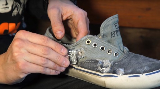 NOWE BUTY nakładać Shoe-Goo cienkimi warstwami i wygładzać równo z powierzchnią. Ogromne kulki wyschniętego kleju z pewnością nie pomogą ci, gdy próbujesz nauczyć się tricków.