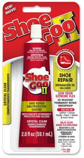 - Shoe-Goo Original sam w sobie nie jest odporny na promieniowanie UV (można go pomalować, aby uzyskać taki efekt), Shoe-Goo II jest odporny na promieniowanie UV.