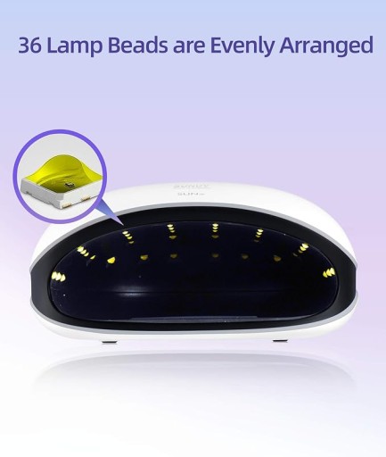Smart Double Speed Curing: 36 sztuk lampy UV LED z technologią białego światła o podwójnej długości fali 365 – 405 nm, które nie są szkodliwe dla oczu i skóry. Moc 48 W i szybkie schnięcie, wydajność suszenia o 50% w porównaniu z innymi suszarkami.