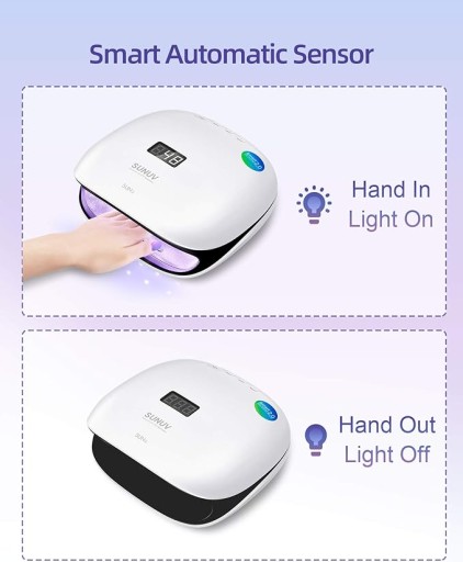 Ochrona Przed Przegrzaniem: lampa do paznokci SUN4 ma 4 ustawienia czasu: 10 s, 30 s, 60 s i 99 s (niska temperatura). Krótkie naciśnięcie przycisku 99S powoduje tryb bezbolesny, naciśnij przycisk przez 2 sekundy, aby podwoić wydajność.