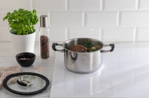 Zastosowane uchwyty podczas użytkowania są ciepłe, ale nie gorące, a śruby mocujące, wykonane również ze stali nierdzewnej AISI 304, gwarantują, że powstające podczas gotowania skropliny nie będą zawierały żadnych metali ciężkich. Garnki posiadają ścianki o grubości 0,6 mm oraz specjalnie wzmocniony brzeg, które razem zapewniają trwałość konstrukcji i odporność na odkształcenia. Garnki te z całą pewnością staną się niezastąpionym partnerem w codziennym gotowaniu, a ich oryginalny kształt zapewni przyjemny efekt wizualny.