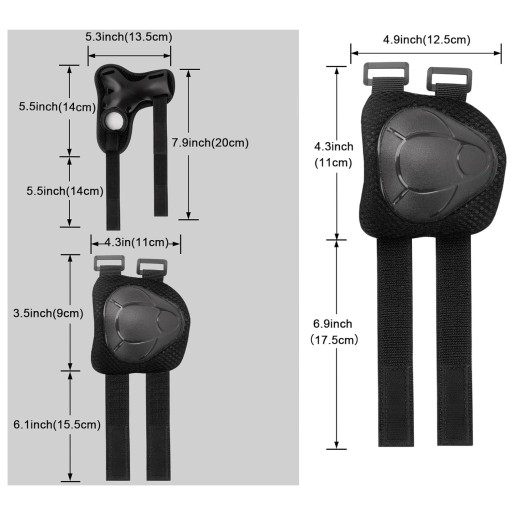 ☑️ Wyposażone w regulowane, elastyczne paski i rzepy, które bezpiecznie dopasowują się do kolan, łokci i nadgarstków.