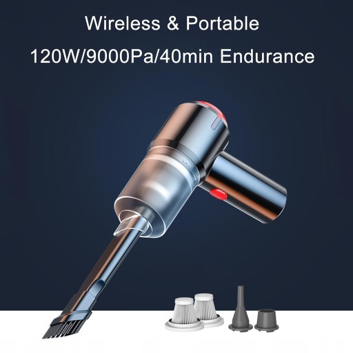 Super szybki silnik: ręczny bezprzewodowy odkurzacz, przyjmuje bezszczotkowy silnik z czystej miedzi, o dużej mocy 120 W, do użytku na sucho i na mokro, silne ssanie 9000 Pa, może z łatwością odsysać zanieczyszczenia, sierść zwierząt i inne suche wycieki pod siedzeniem samochodowym, dywanem biurowym lub narożnikami kuchennymi