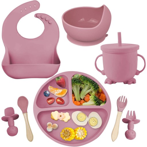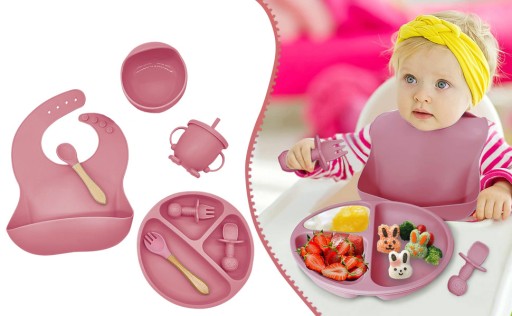 🍛8-częściowa silikonowa zastawa stołowa dla dzieci: