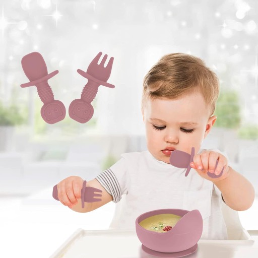 💖Silikonowa główka widelca i łyżki jest zaokrąglona, miękka i wystarczająco delikatna, aby nie spowodować obrażeń, nawet jeśli dziecko włoży ją do ust.