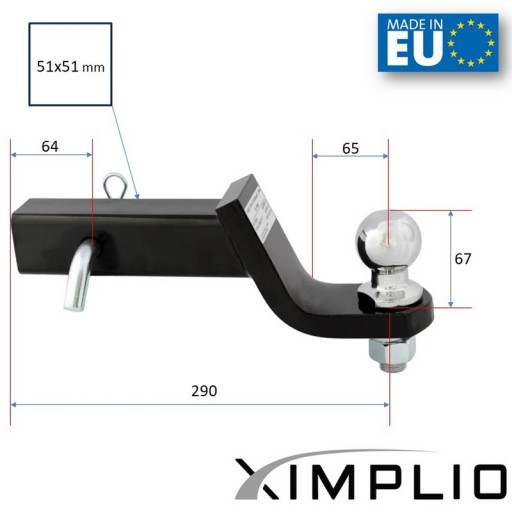 Nasz hak wyposażony jest w kulę, ustawioną prosto w osi otworu. To oznacza, że środek kuli będzie dokładnie na tym samym poziomie co środek metalowego odbiornika. Dzięki temu adapter doskonale sprawdzi się w pojazdach, gdzie gniazdo o wymiarach 52x52 mm znajduje się na wysokości między 35 a 42 cm.
