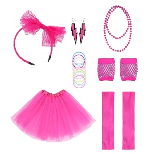 Zestaw damski lata 80 różowy róż disco party.