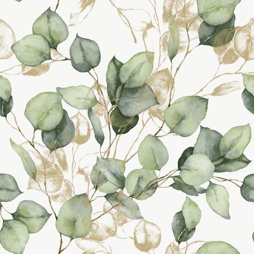 - Tapeta posiada odcienie bieli, złota oraz zieleni