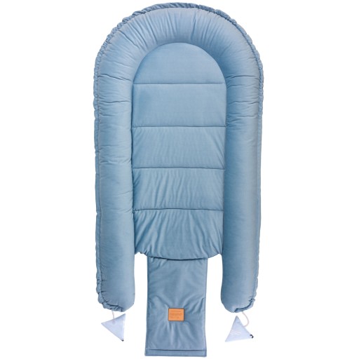 Gniazdko doskonale służy także starszym maluszkom stając się idealną przestrzenią do zabawy, leżenia na brzuszku i pierwszych ćwiczeń – podnoszenia główki czy leżących w jego zasięgu grzechotek. Rozwiązanie sznurków pozwala na używanie kokonu jako przewijaka.
