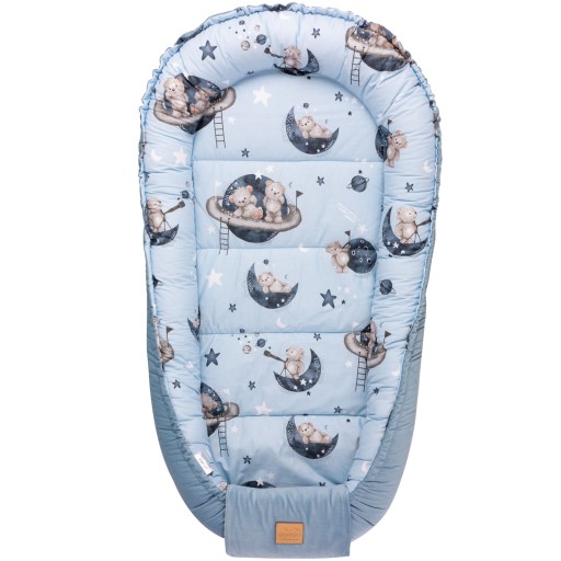 - dwustronny kokon niemowlęcy o wymiarach zewnętrznych: 65 x 120 cm, wymiary powierzchni do spania: 40 x 90 cm, grubość burty 15 cm