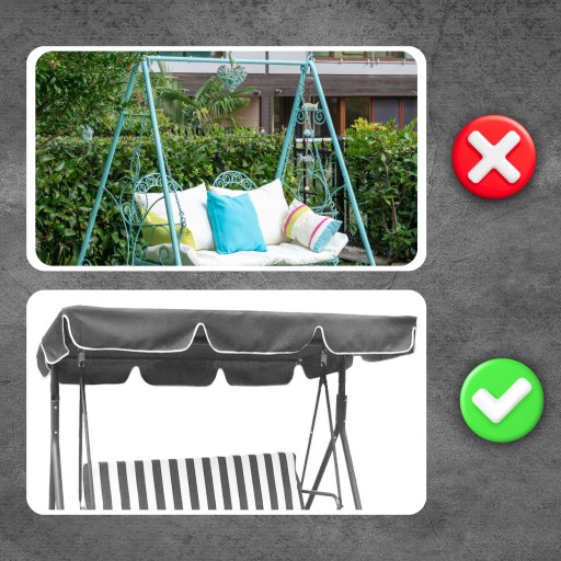 ✅Idealne na Zewnątrz: Pokrycie siedziska huśtawki nadaje się doskonale do użytku na zewnątrz, zapewniając wygodę na balkonie, patio lub w ogrodzie. Jego uniwersalny design pasuje do różnych stylów aranżacji przestrzeni zewnętrznej.