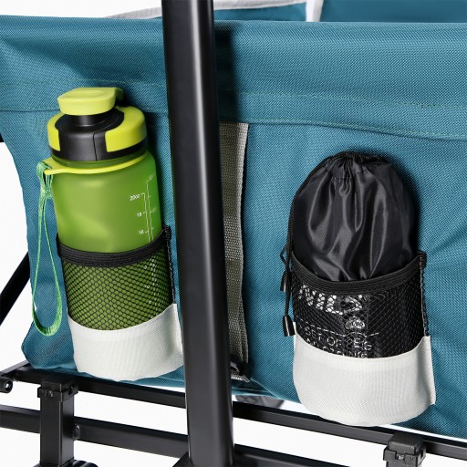 Jego dodatkowe funkcje, takie jak łatwość składania i praktyczne zapinanie do przenoszenia, podnoszą funkcjonalność tego wózka na wyższy poziom. Bez trudu zmieści się w bagażniku samochodu, nie zabierając wiele miejsca, i będzie gotowy do użycia w ciągu kilku sekund. Dzięki prostej ale eleganckiej kolorystyce będzie stylowym dodatkiem do Twojego turystycznego wyposażenia.
