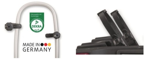 - Pasuje do wszystkich powszechnie używanych modeli rowerów oraz do wszystkich haków holowniczych, a wysoki standard bezpieczeństwa i jakości jest potwierdzony przez najbardziej rygorystyczne niemieckie testy.