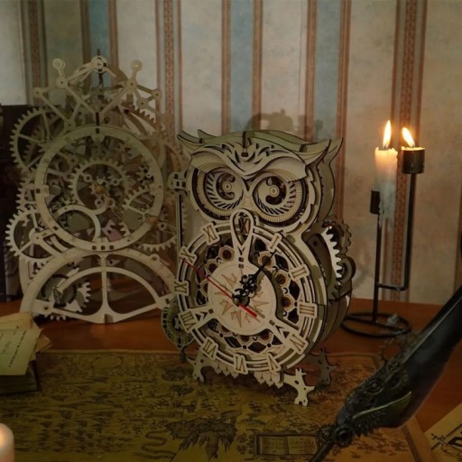 Zegar Sowa marki Robotime składa się ze 161 elementów i doskonale sprawdzi się dla dzieci powyżej 14. roku życia.